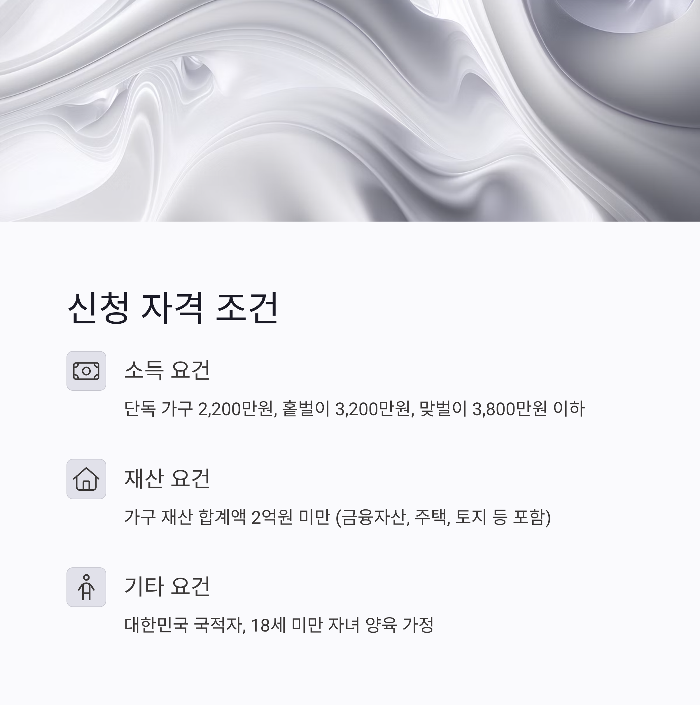 - 가구의 재산 합계액이 2억 원 미만이어야 합니다.