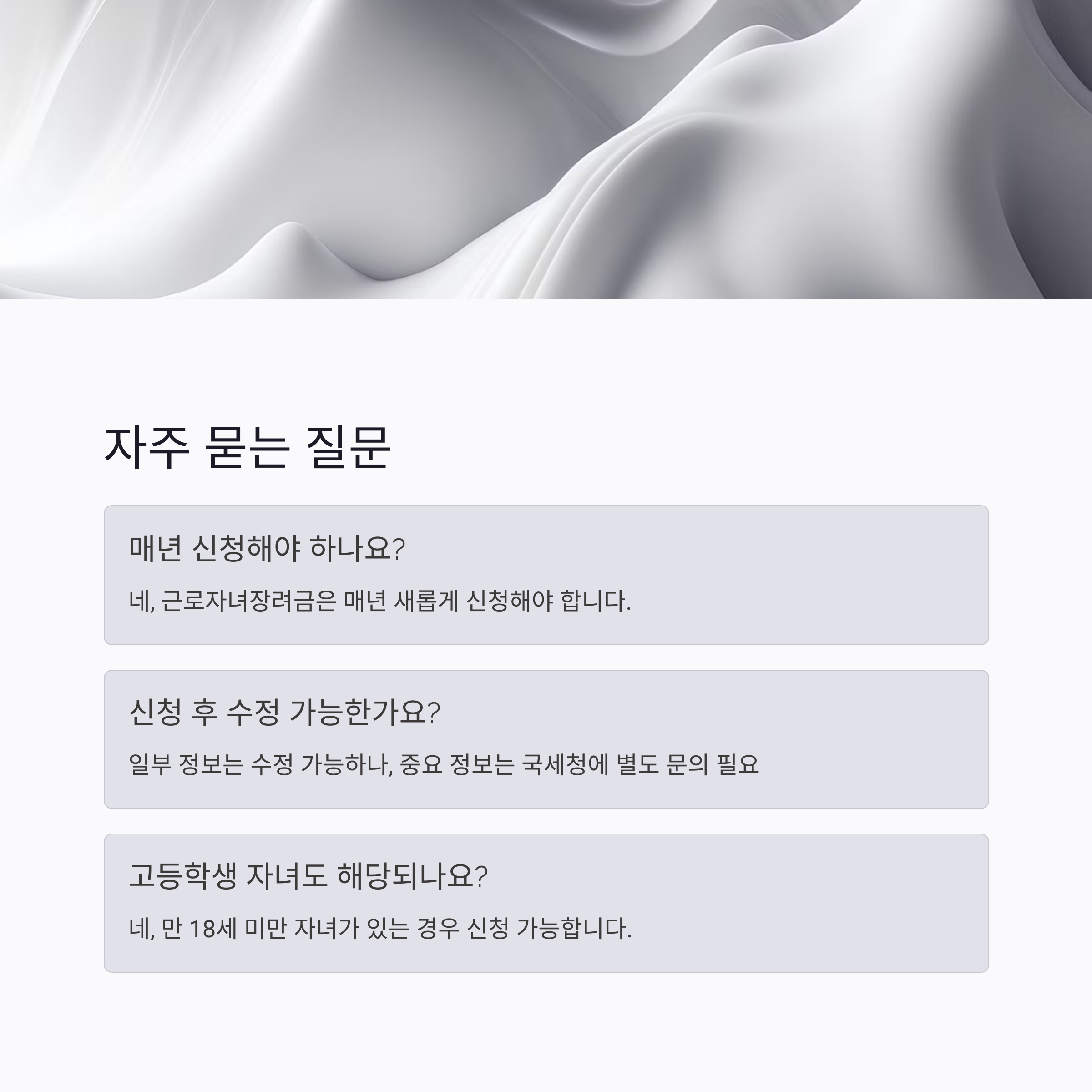 - 네, 근로자녀장려금은 매년 새롭게 신청해야 합니다.