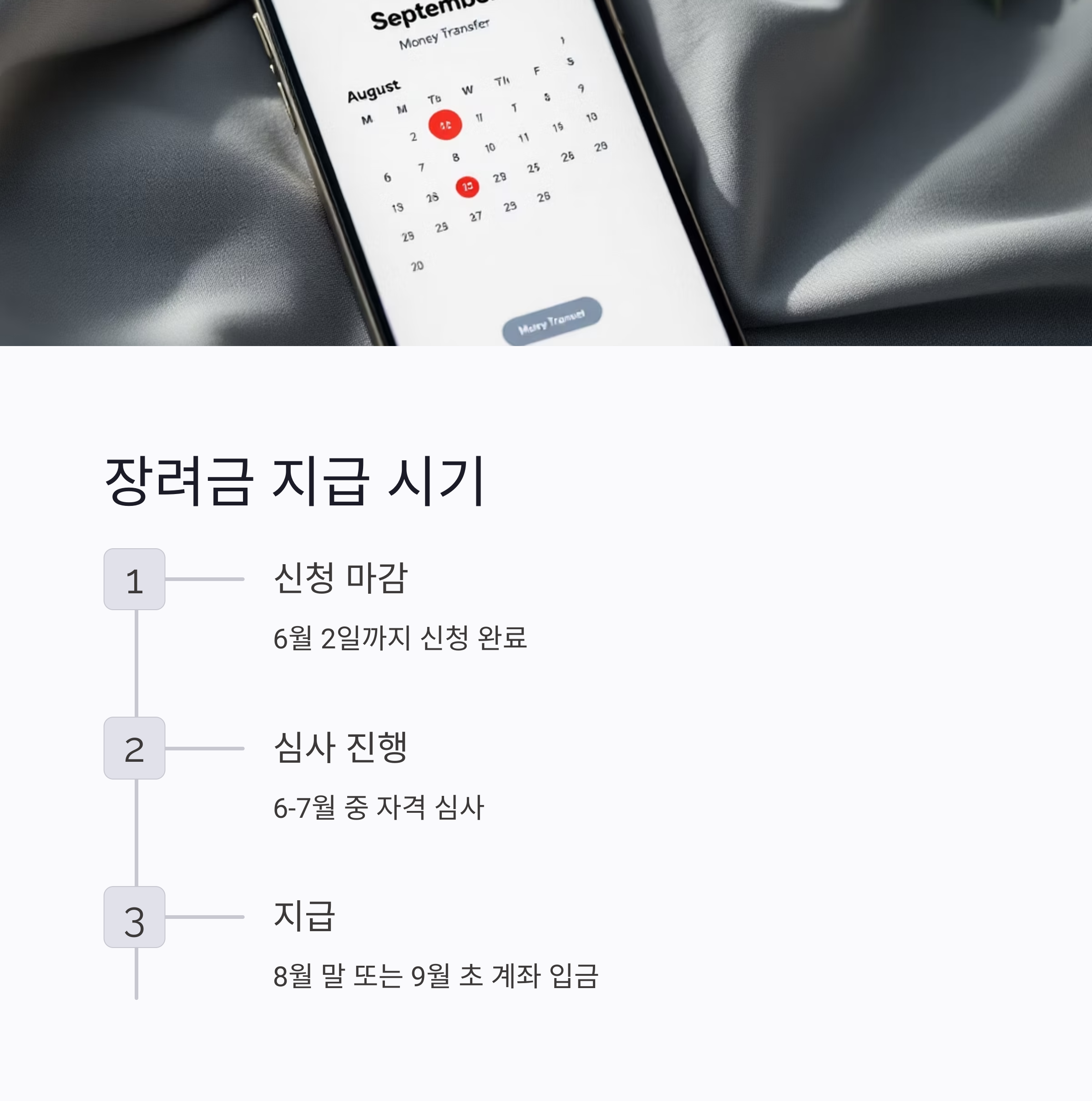 - 신청 후 심사를 거쳐 8월 말 또는 9월 초에 지급됩니다.