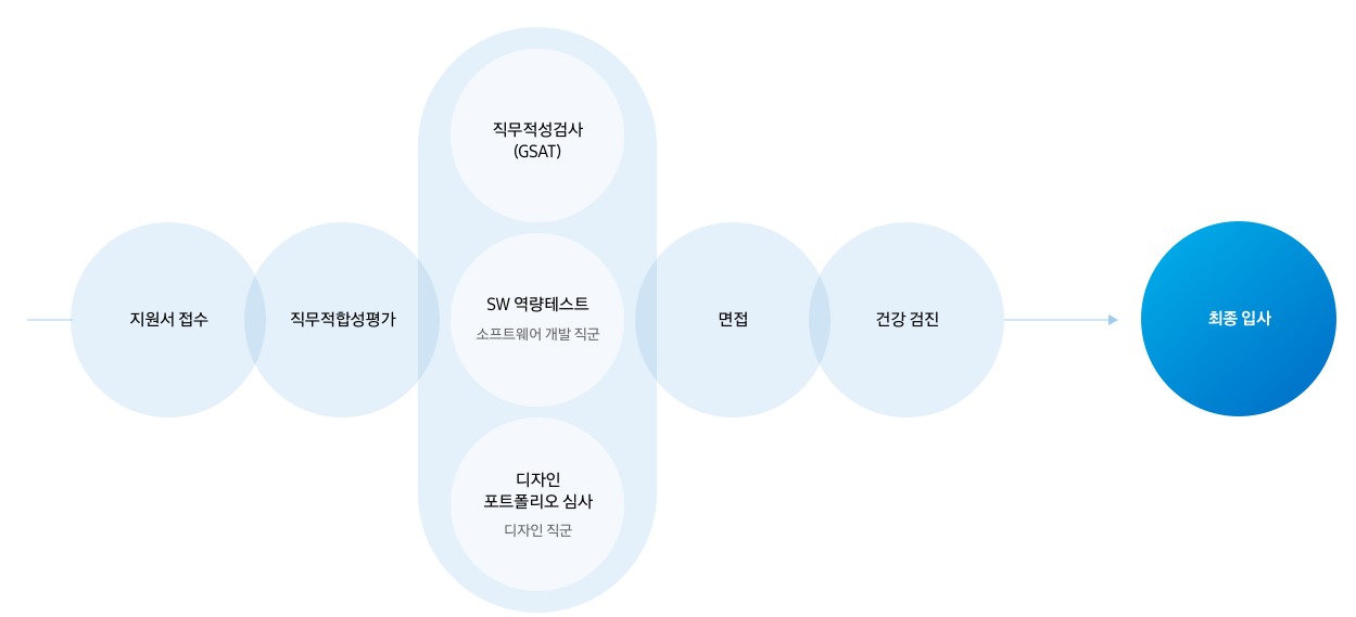 채용절차 : 지원서 접수 → GSAT응시 → 면접 → 건강검진