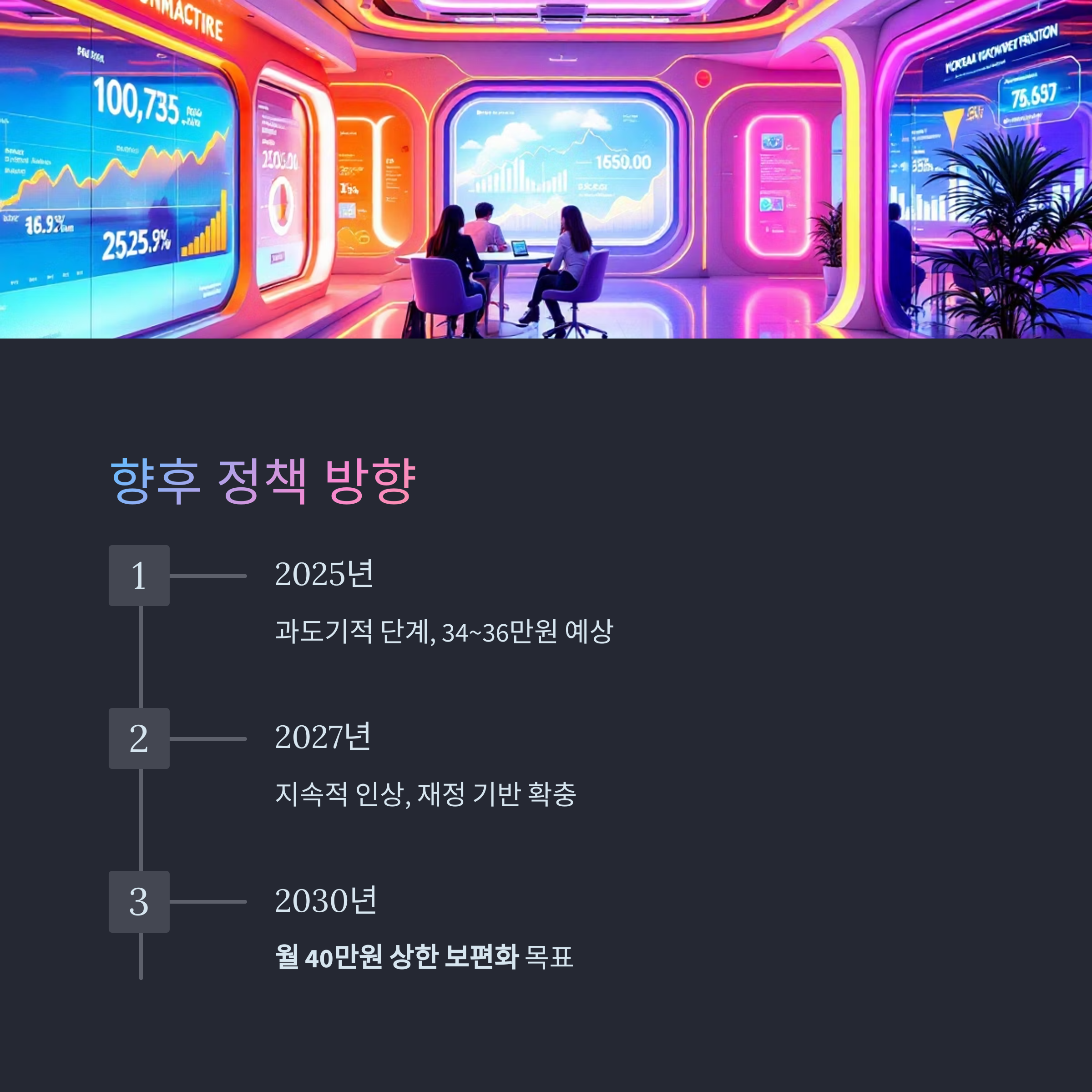 2025년은 그 과도기적 단계로, 지속적인 인상을 위한 재정 기반 확충이 병행될 예정입니다