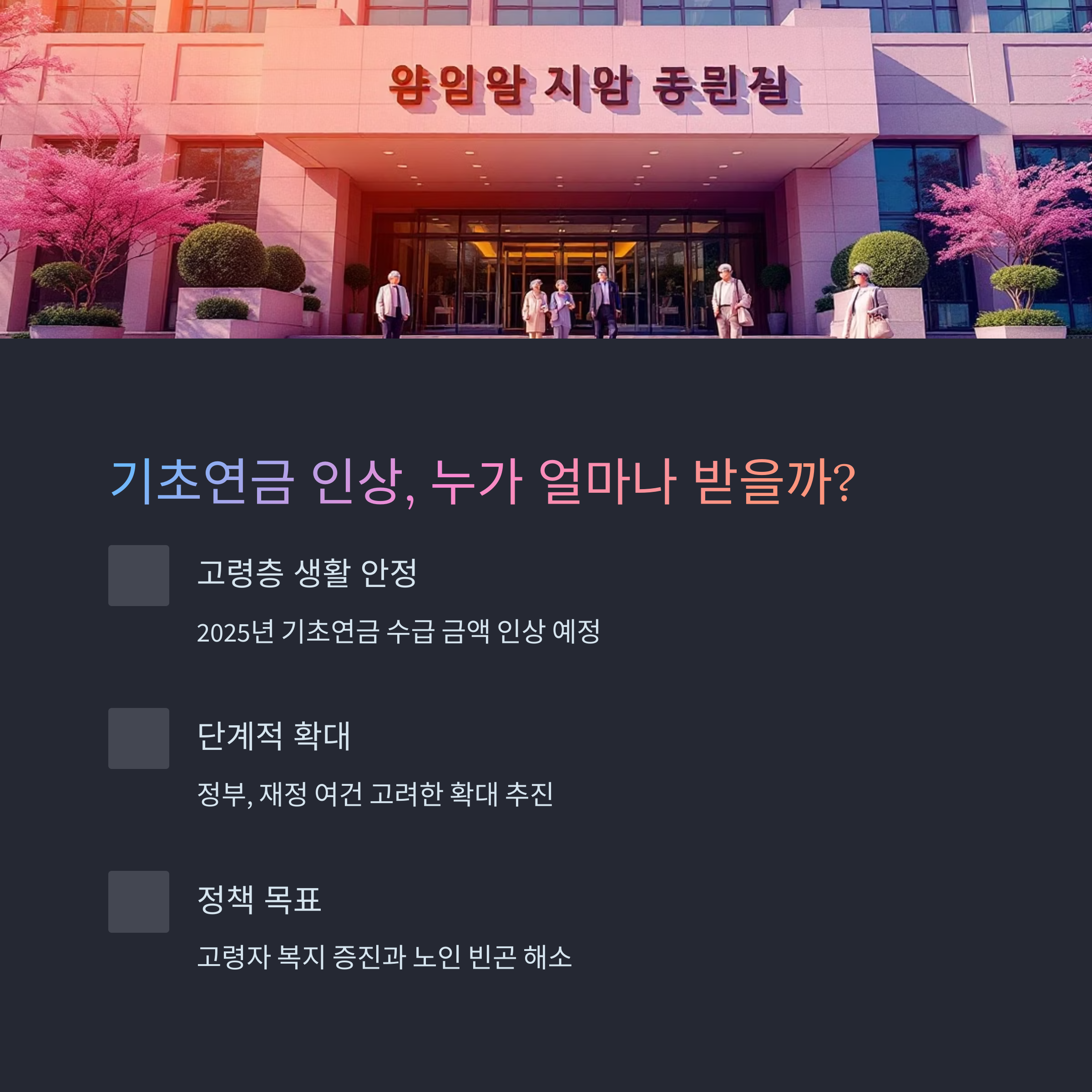 이번 인상안은 고령자 복지 증진과 노인 빈곤 해소라는 정책 기조의 연장선으로 볼 수 있습니다