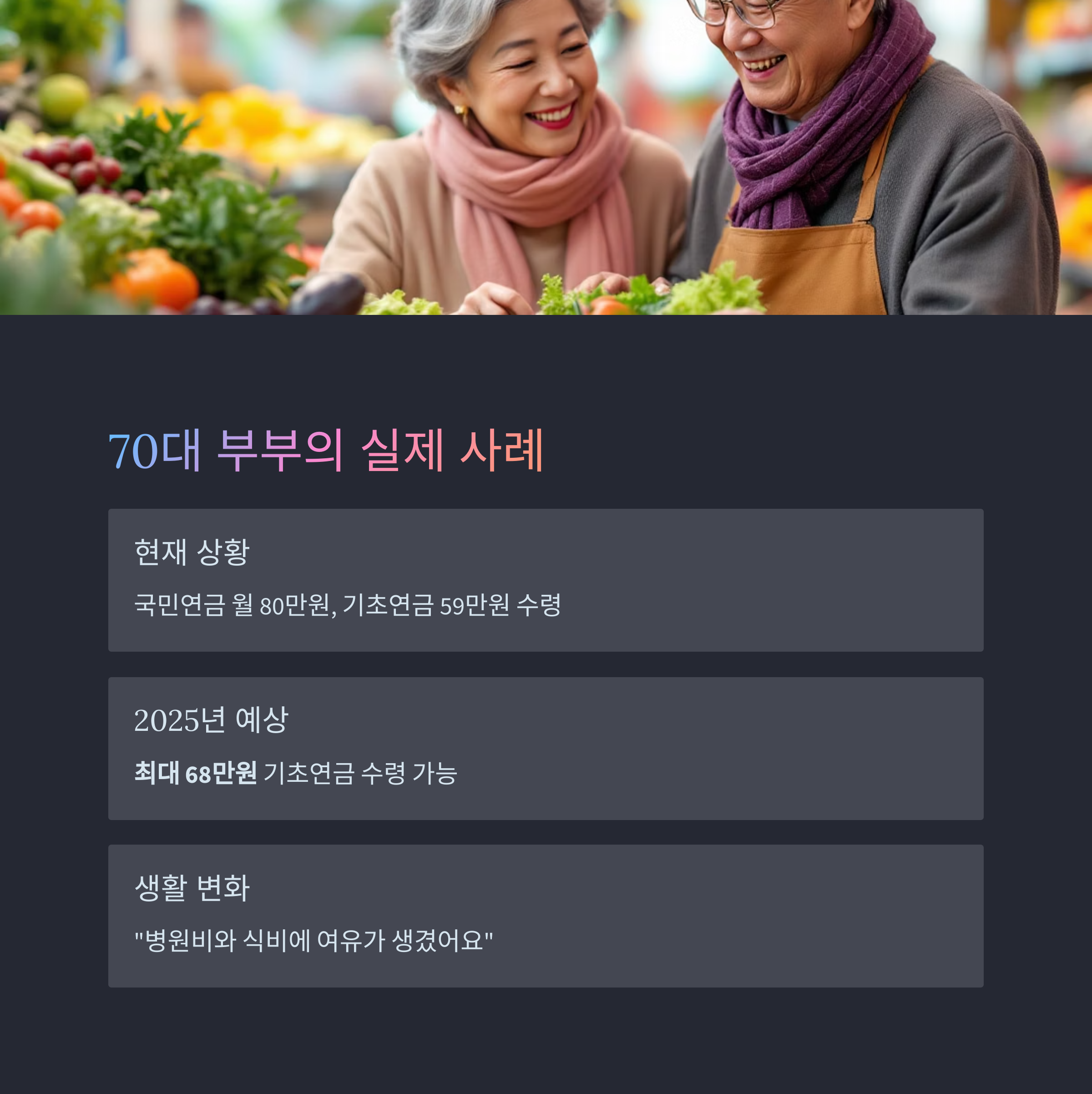 "기초연금 덕분에 생활비 부담이 줄어들어 병원비와 식비에 여유가 생겼어요"