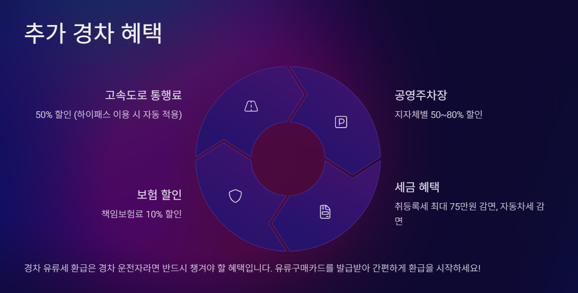 유류세 환급 외에도 경차 소유자는 다양한 혜택을 누릴 수 있습니다