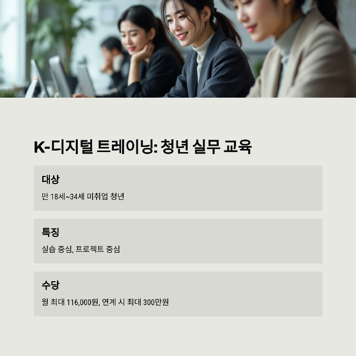 | 훈련 지원 방식 | K-디지털, 국가기간 훈련 등과 병행 가능 |