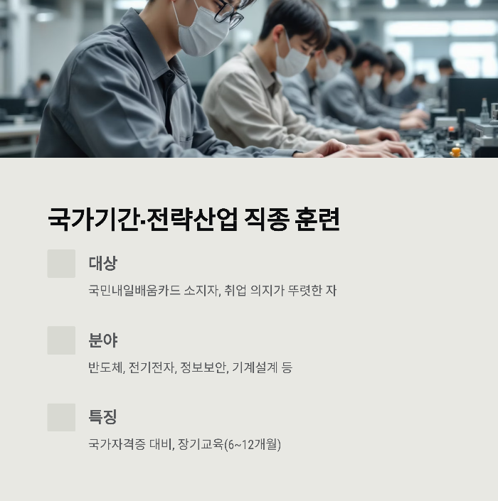 3. 국가기간·전략산업 직종 훈련: 장기 과정, 자격증 필수자에게 적합