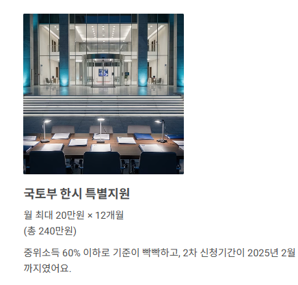 ➡️ 그래서 “국토부 한시지원은 해당 가능성이 낮다” 쪽으로 판단하는 게 현실적이에요.