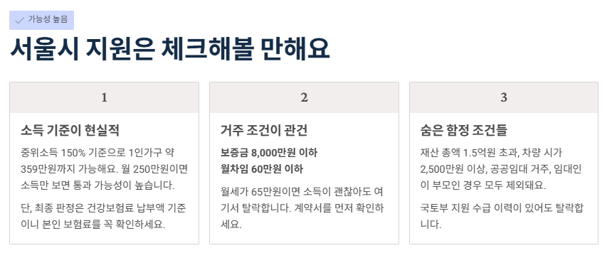 3) 대신 “서울시 청년월세지원”은 가능성 체크해볼 만합니다 (핵심 3가지)
