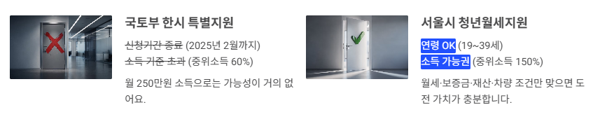 2) 내 조건(30세·월 250만원)으로 “국토부 한시지원”은 왜 빡빡할까?
