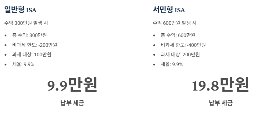 - 혜택: 비과세 한도 추가 (일반 200만원, 서민 400만원)