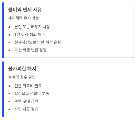 - 예외 사유: 사망, 해외이주, 천재지변 등은 불이익 면제
