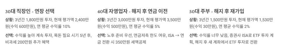 단, 목돈이 급하게 필요하거나 연금계좌로 전환해 세액공제를 받는 게 더 유리한 경우도 있습니다. 본인의 재정 상황과 투자 목표를 고려해 현명하게 선택하세요!