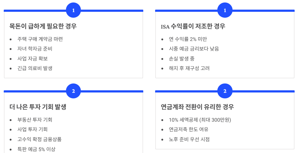 다음 경우에는 ISA 계좌 해지를 고려해야 합니다.