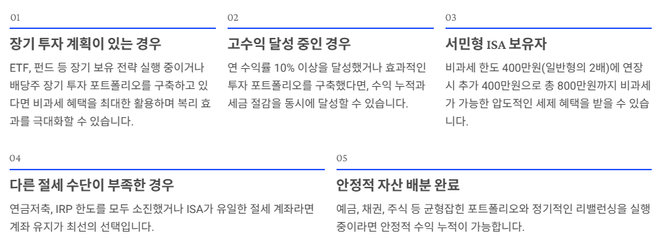 다음 상황에 해당한다면 ISA 계좌 연장이 유리합니다.