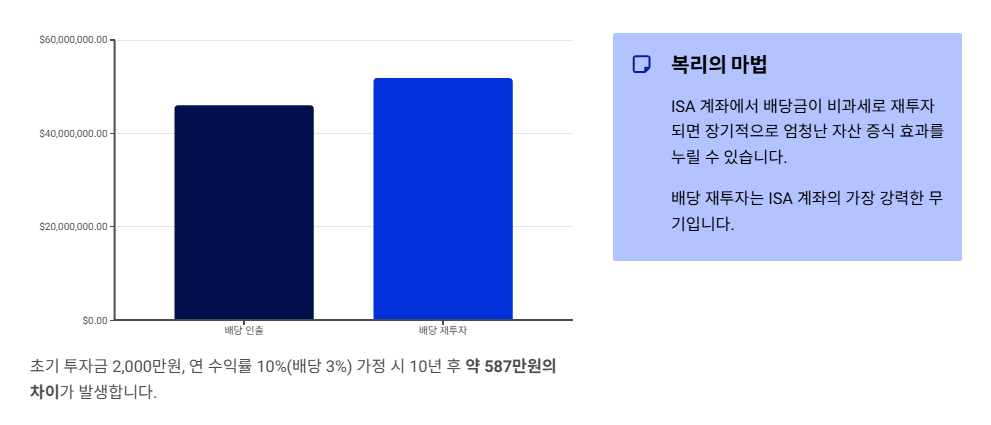 - ISA 추천: 재투자형 (복리 효과)