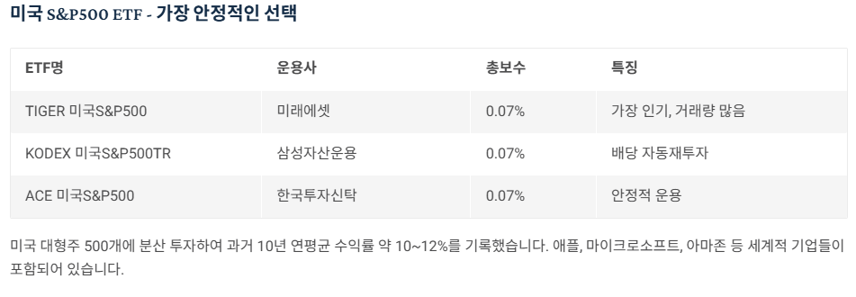 1. 미국 S&P500 ETF (가장 추천)
