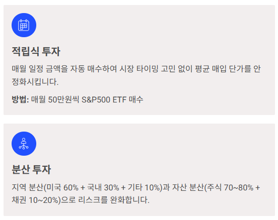 - 고급자: S&P500 40% + 나스닥100 30% + 기타 30%